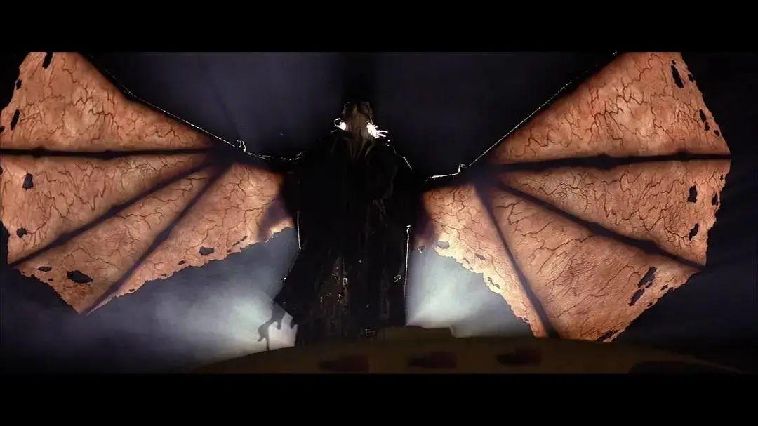 《惊心食人族》这个IP诞生于2001年,稍晚于《惊声尖叫》,但风格却十分老派,蝙蝠妖的造型设计非常考究,它披着复古的风衣,开着生锈的卡车,挥舞着半透明的翅膀,还佩戴各种冷兵器,整体极具压迫感。