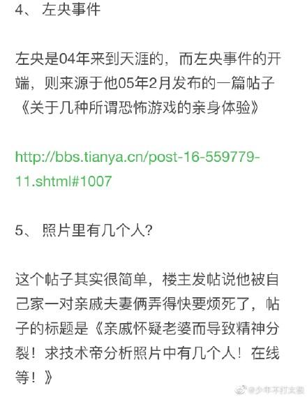 wh_羁绊是罪:第一个,后来是怀疑楼主精神分裂,且楼里很多回复都是楼主自己切换小号。第二个怀疑黑弥撒是凶手,楼里还有两个小号也疑似,不过警方已排除。第三个,如题。楼主收了钱让人观察她的私生活,后来不可控。第四,左央玩见鬼游戏消失。隔了几年出现说生活翻天覆地。第七有人怀疑现在的事情曾发生过。